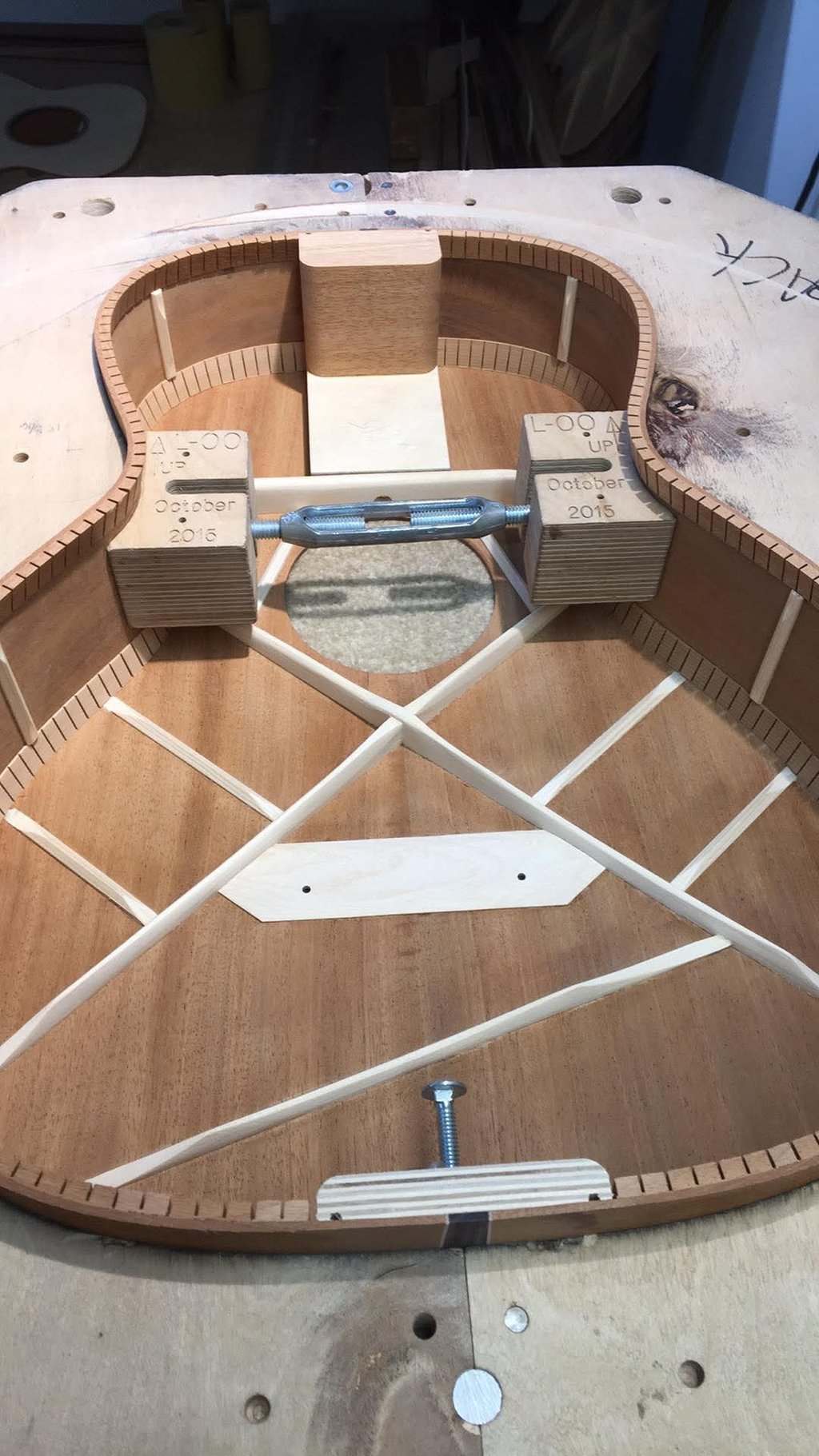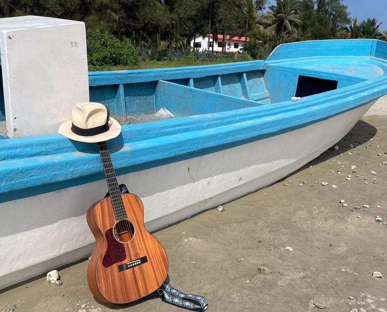 While working at Bourgeois Guitars, I reconnected with my dear friend Sammi Rudkus. After leaving the US for a new life in Mexico, Sammi eventually made his way down to South America. When I learned he was marrying a woman in Ecuador, I was determined to make him the ultimate wedding gift, a handmade guitar. With the guidance of Dana Bourgeois and the Bourgeois team, I got Sammi's guitar ready for their wedding day. I even managed to hand-deliver his gift to their new home in Malacatos, Ecuador. The L-OO 12-fret style guitar, which Sammi lovingly named Maggi Mo, features an all-solid mahogany top, back, and sides with Indian rosewood binding and ebony bridge, fretboard, and headplate. It was also a lefty, which added to the fun. This experience was one of the most incredible journeys of my life and a true testament to our friendship.